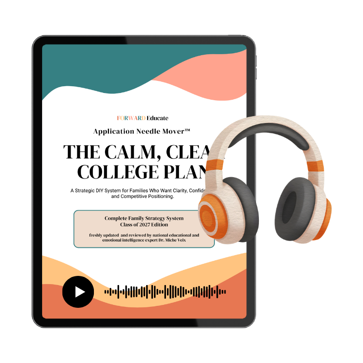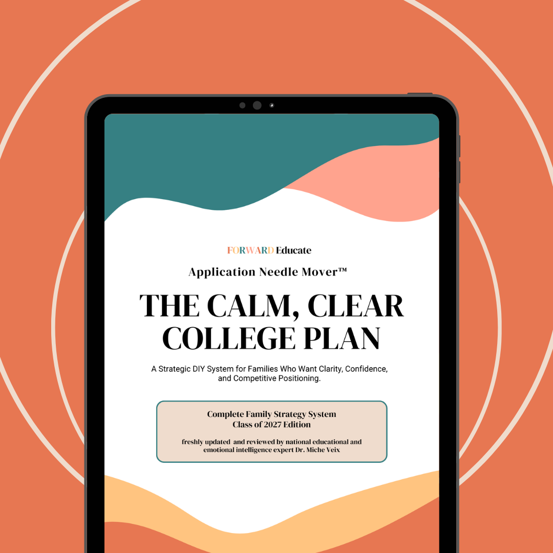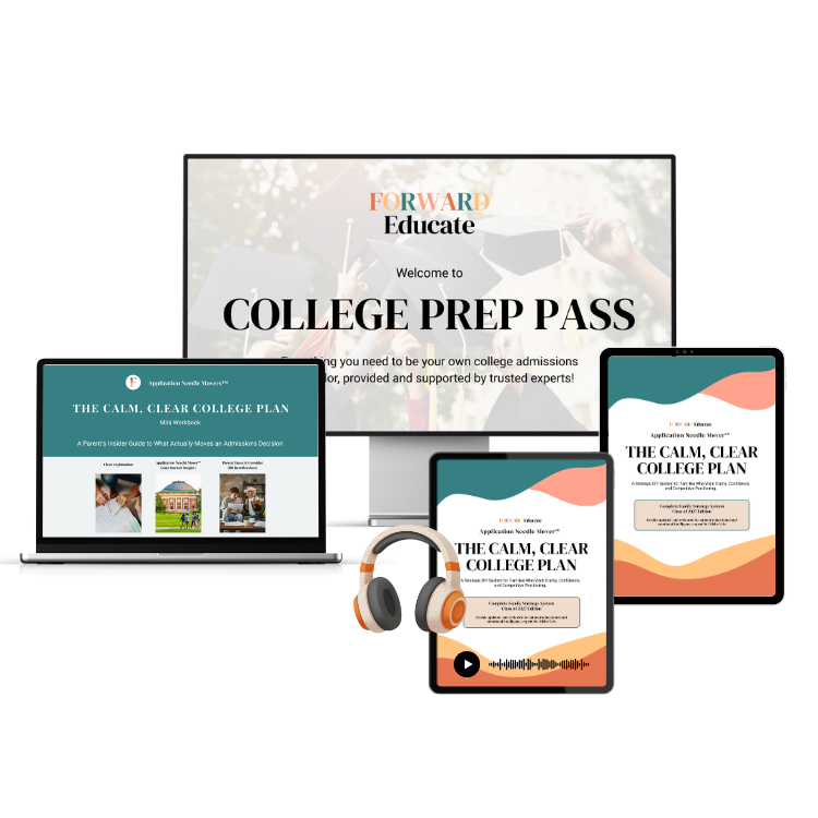 Forward Educate's College Prep Pass puts YOU in the driver’s seat of your own journey, giving parents the tools and confidence to guide their student through college planning at their own pace while still receiving the personal touch of college admissions counseling via monthly live group coaching with Dr. Miche. It’s the perfect balance of independence and expert guidance, all for a fraction of traditional counseling costs.